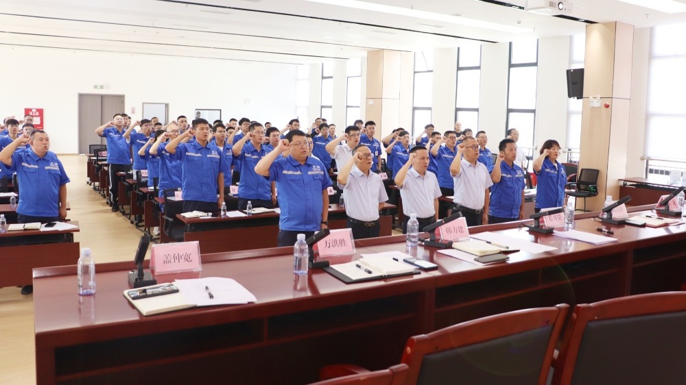 为持续深入召开管理提升行动,进一步强化“全员质量,全员成本、全员安全”理念,有助于降本增效措施落实落细,确保年度各项目标任务实现,8月8日, ■澳门十大棋牌排行榜最新■澳门十大棋牌排行榜推荐 矿产举行“降本增效”誓师大会。会议由公司团支部统战委员、常务副总经理韩方建主持,公司团支部书记、董事长、总经理徐开贵出席活动并作动员讲话。